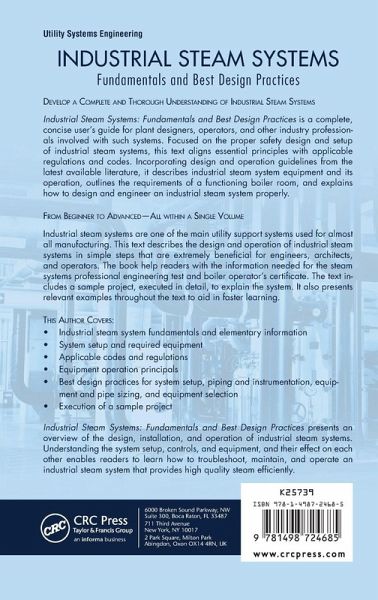 This clear, easy-to-follow handbook is a useful resource for engineers, architects, and plant operators. A one-stop reference for beginners and advanced readers alike, it describes industrial steam systems design and operation in simple steps. The book explains the system fundamentals, system setup, and required equipment, building, mechanical, and other code requirements, and details the execution of a sample project. It also explains the equipment operation principle and describes best design practices for system setup, piping and instrumentation, equipment sizing, pipe sizing, and equipment selection.