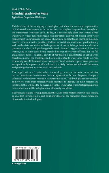 The application of sustainable technologies can eliminate or minimize micro-contaminants in wastewater. Several organizations focus on the potential impacts to humans and their environments by wastewater reuse. This book gathers new research and reviews work from researchers and scientists to identify the main barriers and limitations that will need to be overcome, so that wastewater reuse strategies gain more momentum and will be adopted more efficiently worldwide.