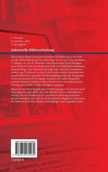 Dieses Buch bietet eine praxisorientierte Einführung in die industrielle Bildverarbeitung. Das Buch liegt nun in einer überarbeiteten 3. Auflage vor, die die aktuellen technologischen Entwicklungen zum Beispiel im Bereich Kameratechnik und Farbbildverarbeitung berücksichtigt. Der Schwerpunkt liegt dabei auf dem Zusammenwirken von Verfahren in einem bildverarbeitenden Gesamtsystem einschließlich der typischen Problemstellungen bei der Integration in die automatisierte Fertigung. Anhand von realen Beispielen und der Standard-Software NeuroCheck wird eine Anleitung zur Lösung industrieller Sichtprüfaufgaben gegeben. Basierend auf ihrer langjährigen Erfahrung legen die Autoren auch diejenigen Rezepte offen, die zwar üblicherweise nicht publiziert werden, für das Funktionieren von Bildverarbeitungssystemen jedoch wesentlich sind. Mit der als Download verfügbaren Testversion der Software kann das Gelesene nachvollzogen und eingeübt werden.