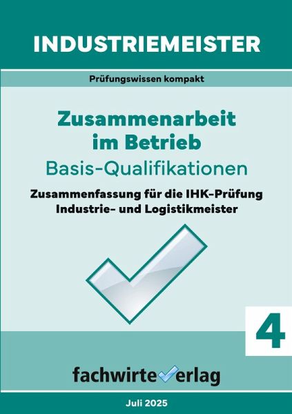 Letzte berücksichtigte Klausur: April 2025; ein Repetitorium aus der Reihe Prüfungswissen kompakt, Inhalt nach DIHK-Rahmenplan für die Prüfung der Industriemeister. Dieser Band dient der Wiederholung im Fach Zusammenarbeit im Betrieb, um sich auf die Klausur oder eine Ergänzungsprüfung vorzubereiten. In den letzten Wochen vor den Klausuren ist die Fülle der Skripten und ergänzenden Unterlagen oft mehr bedrohlich als hilfreich. Diese Reihe trägt dem Bedürfnis nach Zusammenfassungen Rechnung, die auf alles verzichten, was nicht unmittelbar prüfungsrelevant ist, aber auch nichts weglassen, was in der Klausur gebraucht wird. Es wurden alle bisher in diesem Fach gestellten Klausurfragen seit 2009 berücksichtigt. Bei jedem Thema ist angegeben, in welcher Klausur der Stoff vorkam. Damit können bei der Vorbereitung schnell zu jedem wichtigen Thema alte Klausurfragen zum Lernen und Üben gefunden werden. Zusätzlich wurden aufgenommen ein Extra-Kapitel zur Ergänzungsprüfung, Kontrollfragen nach jedem Kapitel, Klausuraufgaben mit Lösungshinweisen zum Üben.