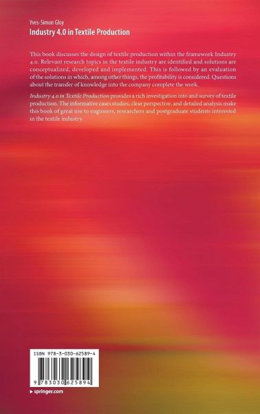 This book discusses the design of textile production within the framework Industry 4.0. Relevant research topics in the textile industry are identified and solutions are conceptualized, developed and implemented. This is followed by an evaluation of the solutions in which, among other things, the profitability is considered. Questions about the transfer of knowledge into the company complete the work.