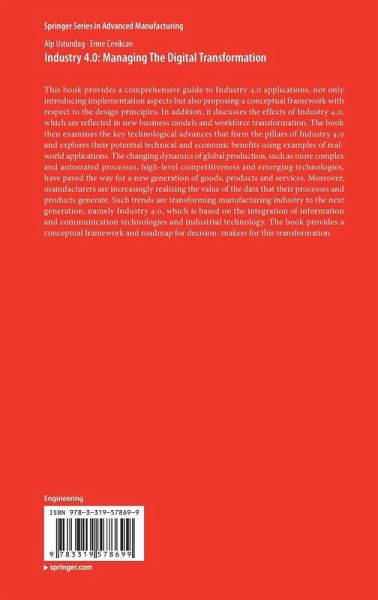 This book provides a comprehensive guide to Industry 4.0 applications, not only introducing implementation aspects but also proposing a conceptual framework with respect to the design principles. In addition, it discusses the effects of Industry 4.0, which are reflected in new business models and workforce transformation. The book then examines the key technological advances that form the pillars of Industry 4.0 and explores their potential technical and economic benefits using examples of real-world applications. The changing dynamics of global production, such as more complex and automated processes, high-level competitiveness and emerging technologies, have paved the way for a new generation of goods, products and services. Moreover, manufacturers are increasingly realizing the value of the data that their processes and products generate. Such trends are transforming manufacturing industry to the next generation, namely Industry 4.0, which is based on the integration of information and communication technologies and industrial technology.The book provides a conceptual framework and roadmap for decision-makers for this transformation