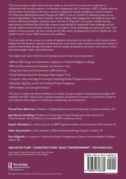 This book provides in-depth results and case studies in innovation from actual work undertaken in collaboration with industry partners in Architecture, Engineering, and Construction (AEC). Scientific advances and innovative technologies in the sector are key to shaping the changes emerging as a result of Industry 4.0. Mainstream Building Information Management (BIM) is seen as a vehicle for addressing issues such as industry fragmentation, value-driven solutions, decision-making, client engagement, and design/process flow; however, advanced simulation, computer vision, Internet of Things (IoT), blockchain, machine learning, deep learning, and linked data all provide immense opportunities for dealing with these challenges and can provide evidenced-based innovative solutions not seen before. These technologies are perceived as the "true" enablers of future practice, but only recently has the AEC sector recognised terms such as "golden key" and "golden thread" as part of BIM processes and workflows. This book builds on the success of a number of initiatives and projects by the authors, which include seminal findings from the literature, research and development, and practice-based solutions produced for industry. It presents these findings through real projects and case studies developed by the authors and reports on how these technologies made a real-world impact. The chapters and cases in the book are developed around these overarching themes: ¿ BIM and AEC Design and Optimisation: Application of Artificial Intelligence in Design ¿ BIM and XR as Advanced Visualisation and Simulation Tools ¿ Design Informatics and Advancements in BIM Authoring ¿ Green Building Assessment: Emerging Design Support Tools ¿ Computer Vision and Image Processing for Expediting Project Management and Operations ¿ Blockchain, Big Data, and IoT for Facilitated Project Management ¿ BIM Strategies and Leveraged Solutions This book is a timely and relevant synthesis of a number of cogent subjects underpinning the paradigm shift needed for the AEC industry and is essential reading for all involved in the sector. It is particularly suited for use in Masters-level programs in Architecture, Engineering, and Construction.