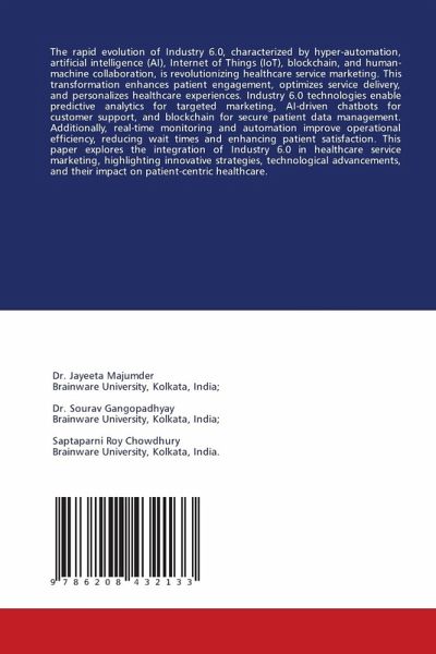 The rapid evolution of Industry 6.0, characterized by hyper-automation, artificial intelligence (AI), Internet of Things (IoT), blockchain, and human-machine collaboration, is revolutionizing healthcare service marketing. This transformation enhances patient engagement, optimizes service delivery, and personalizes healthcare experiences. Industry 6.0 technologies enable predictive analytics for targeted marketing, AI-driven chatbots for customer support, and blockchain for secure patient data management. Additionally, real-time monitoring and automation improve operational efficiency, reducing wait times and enhancing patient satisfaction. This paper explores the integration of Industry 6.0 in healthcare service marketing, highlighting innovative strategies, technological advancements, and their impact on patient-centric healthcare.