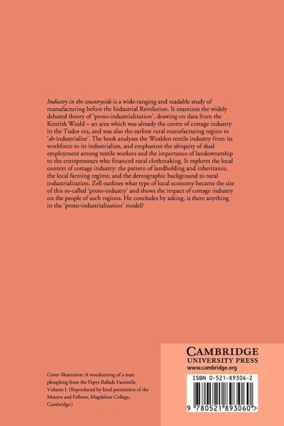 Industry in the Countryside is a wide-ranging and readable study of the nature of manufacturing before the Industrial Revolution. It examines the widely-debated theory of 'proto-industrialisation', drawing on data from the Kentish Weald - an area which was already a centre of cottage industry in the Tudor era and was also the earliest rural manufacturing region to 'de-industrialise'. The book analyses the Wealden textile industry from its workforce to its industrialists and emphasises the ubiquity of dual employment among textile workers. It explores the local context of cottage industry, investigating the pattern of landholding and inheritance, the local farming regime, and the demographic background to rural industrialisation. Zell outlines what type of local economy became the site of this so-called 'proto-industry' and shows the impact of cottage industry on the people of such regions. He concludes by asking, is there anything in the 'proto-industrialisation' model?