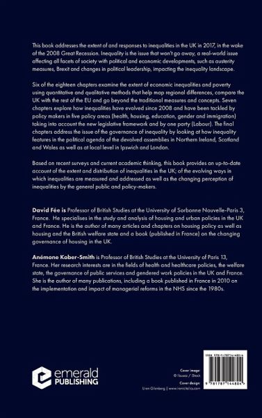 This book addresses the question of the extent of and responses to inequalities in the UK in 2017 in the wake of the 2008 Great Recession and provides an up-to-date account of the distribution of inequalities, the evolving ways they are measured/addressed as well as the changing perception of inequalities by the general public and policy-makers.