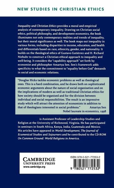 Inequality and Christian Ethics, first published in 2000, provides a moral and empirical analysis of contemporary social and economic inequality. Drawing on Christian social ethics, political philosophy, and development economics, the book seeks to create an interdisciplinary conversation that illuminates not only the contemporary realities and trends of inequality, but their moral significance as well. It is necessary to examine and understand inequality in various forms - which the book maps out - including disparity in income, education, and health as well as differentials based on race, ethnicity, gender, and nationality. The book draws in particular on the theological ethics of Gustavo Gutiérrez and H. Richard Niebuhr to provide a Christian ethical approach to inequality and well-being. It considers the 'capability approach' set forth by Amartya Sen, Nobel laureate in economics. Sen's framework helps Christians and other persons to add specificity to what the commitment to 'equality before God' would demand in social and economic relations.