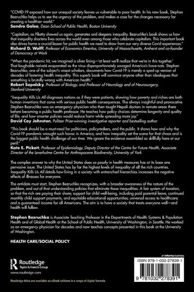 Acknowledgements Foreword by Richard Wilkinson Introduction 1. How healthy are we in the United States 2. Healthcare in America 3. Inequality Kills 4. Poverty Perspectives 5. Early Life Lasts a Lifetime 6. Health Inequities 7. Stress is the Killer 8. Our Health Depends on Political Choices 9. Prescription Needed 10. What Can We Do? Afterword Index