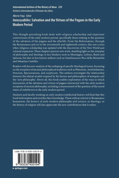 This thought provoking book deals with religious scholarship and important controversies of the early modern period, specifically those relating to the question of the salvation of the pagans and the afterlife. From the Reformation, through the Renaissance and on to the seventeenth and eighteenth century, this was a time when religious scholarship was updated with the discoveries of the New World and colonial expansion. These chapters present new work, shedding light on the interplay of philosophy and theology in key thinkers such as Montaigne, Leibniz, Bayle and Spinoza, but also in less known authors such as Gianfrancesco Pico della Mirandola and Sebastian Castellio.