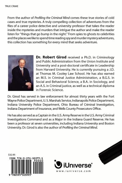 From the author of Profiling the Criminal Mind comes these true stories of cold cases and true mysteries. A truly compelling collection of adventures from the files of a career police detective and university professor that takes the reader inside the mysteries and murders that intrigue the author and make the reader listen for "things that go bump in the night." From spies to ghosts to celebrities and the places we like to spend time reading spy and murder mystery adventures, this collection has something for every mind that seeks adventure.
