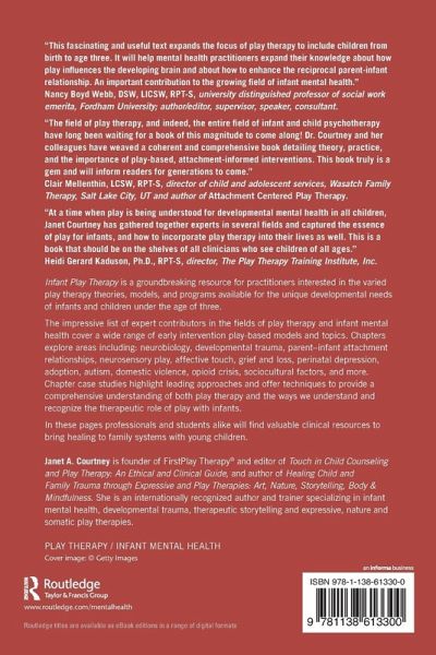 "At a time when play is being understood for developmental mental health in all children, Janet Courtney has gathered together experts in several fields and captured the essence of play for infants, and how to incorporate play therapy into their lives as well. This is a book that should be on the shelves of all clinicians who see children of all ages."