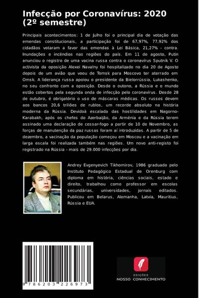 Principais acontecimentos: 1 de Julho foi o principal dia de votação das emendas constitucionais, a participação foi de 67,97%, 77,92% dos cidadãos votaram a favor das emendas à Lei Básica, 21,27% - contra. Inundações e incêndios nas regiões do país. Em 11 de agosto, Putin anunciou o registro de uma vacina russa contra o coronavírus Sputnik V. O activista da oposição Alexei Navalny foi hospitalizado no dia 20 de Agosto depois de um avião que voou de Tomsk para Moscovo ter aterrado em Omsk. A liderança russa apoiou o presidente da Bielorrússia, Lukashenko, no seu confronto com a oposição. Desde o outono, a Rússia e o mundo estão cobertos pela segunda onda de infecção pelo coronavírus. Desde 28 de outubro, é obrigatório o uso de máscaras médicas. Os russos devem aos bancos 20,6 triliões de rublos, um recorde absoluto na história moderna da Rússia. Devidoà escalada das hostilidades em Nagorno-Karabakh, após os chefes do Azerbaijão, da Arménia e da Rússia terem assinado uma declaração de cessar-fogo a partir de 10 de Novembro, as forças de manutenção da paz russas foram aí introduzidas. A partir de 5 de dezembro, a vacinação da população começou em Moscou e a vacinação em larga escala foi realizada também nas regiões. Um novo anti-registo foi registrado na Rússia - mais de 29.000 infecções por dia.
