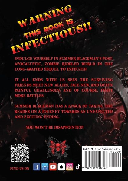 Indulge yourself in Summer Blackman's post-apocalyptic, zombie riddled world in the long-awaited sequel to infected: It all ends with us, sees the surviving friends meet new allies, face new, and often painful challenges, and of course, fight more battles. Summer Blackman has a knack of taking the reader on a journey towards an unexpected and exciting ending. Please note: highschool horror stories are written by young adults for young adults.