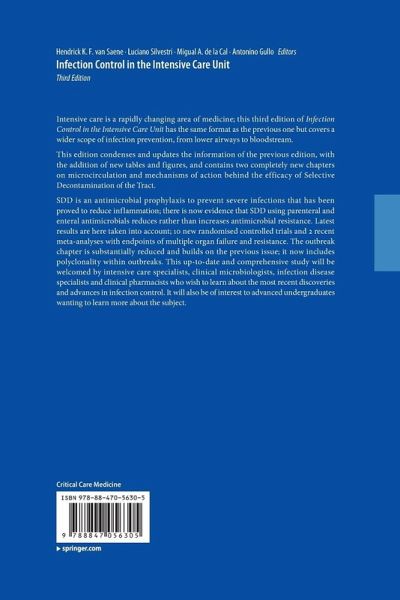 Intensive care is a rapidly changing area of medicine, and after four years from the 2nd edition the volume editors and authors have deemed necessary to update it. In the recent years, in fact, five new randomised controlled trials and five new meta-analyses demonstrate that selective decontamination of the digestive tract [SDD] is an antimicrobial prophylaxis to prevent severe infections of not only lower airways but also of blood. Additionally, SDD has been shown to reduce inflammation including multiple organ failure and mortality. An intriguing observation is the evidence that SDD using parenteral and enteral antimicrobials reduces rather than increases antimicrobial resistance. Moreover, a new chapter on microcirculation had been added.