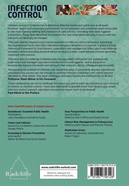 Paul Elliott has drawn together a thought-provoking collection of topics that together explain the psychology of infection prevention and control. This is a book about how to change and improve practice, written by people who understand the trade of infection prevention and control. Reflection exercises are cleverly used throughout the text to provoke the reader to think of their own experiences in and their practice of healthcare. The reader is led into considering how improvements can be made to the delivery of infection prevention and control, and at the same time to understand why the way we think ultimately determines the likelihood of their success. Each reflection exercise is accompanied by clear and concise explanations, helping the reader to analyse and critique him/ herself and the way we do things now.