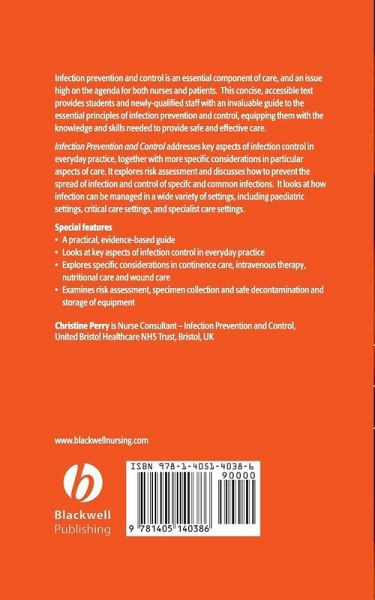 Infection prevention and control is an essential component of care, and an issue high on the agenda for both nurses and patients. This concise, accessible text provides students and newly qualified staff with an invaluable guide to the essential principles of infection prevention and control, equipping them with the knowledge and skills needed to provide safe and effective care. Infection Prevention and Control addresses key aspects of infection control in everyday practice, together with more specific considerations in particular aspects of care. It explores risk assessment, discusses how to prevent the spread of infection and control of specific and common infections. It looks at how infection can be managed in a wide variety of settings, including paediatric settings, critical care settings, and specialist care settings. to provide safe and effective care.