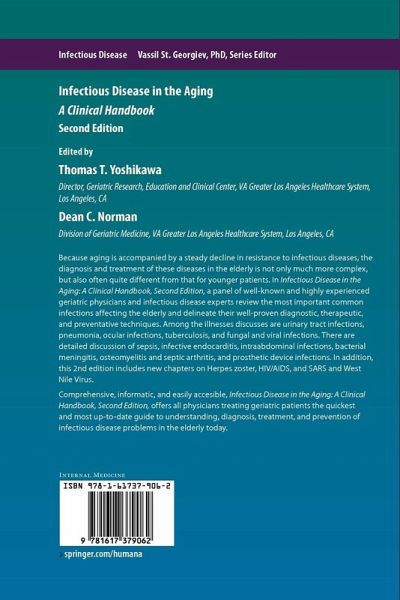 In the second edition of Infectious Disease in the Aging: A Clinical Handbook, a panel of well known and highly experienced geriatric physicians and infectious disease experts review the most important common infections affecting the elderly and delineate their well-proven diagnostic, therapeutic, and preventive techniques. Among the illnesses discussed are urinary tract infections, pneumonia, ocular infections, tuberculosis, and fungal and viral infections. In addition, there are detailed discussions of sepsis, infective endocarditis, intraabdominal infections, bacterial meningitis, osteomyelitis and septic arthritis, and prosthetic device infections.