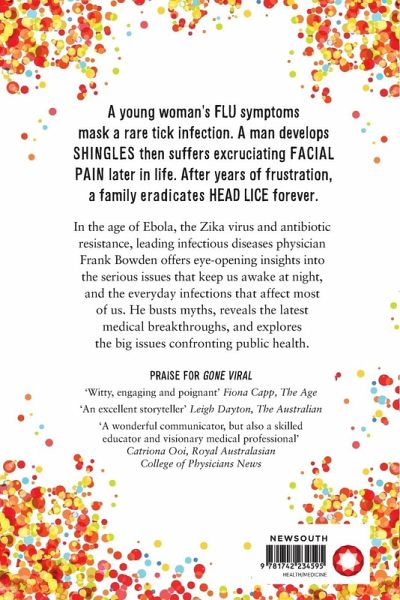 A woman's innocuous cold symptoms mask a debilitating rare tick infection. A young man develops shingles then suffers blinding head pain later in life. After years of frustration, a family eradicates head lice forever. Infectious follows on from Frank Bowden's 2011 Gone Viral but deals much more with everyday infectious diseases - the flu, colds, sore throats and head lice. It also tackles topical and critical issues in modern medical practice - the emergence of antibiotic resistance, the Ebola epidemic, the Lyme Disease controversy and the causes of chronic fatigue. It can be applied to more recent epidemics and pandemics such as SARS and novel coronavirus COVID-19.