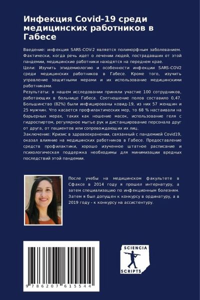 Vwedenie: infekciq SARS-COV-2 qwlqetsq polimorfnym zabolewaniem. Fakticheski, kogda rech' idet o lechenii lüdej, postradawshih ot ätoj pandemii, medicinskie rabotniki nahodqtsq na perednem krae.Celi: Izuchit' äpidemiologiü i osobennosti infekcii SARS-COV2 sredi medicinskih rabotnikow w Gabese. Krome togo, izuchit' uprawlenie zaschitnymi merami i ih ispol'zowanie medicinskimi rabotnikami.Rezul'taty: w nashem issledowanii prinqli uchastie 100 sotrudnikow, rabotaüschih w bol'nice Gabesa. Sootnoshenie polow sostawilo 0,47. Bol'shinstwo (82%) byli inficirowany kowid-19, iz nih 57 zhenschin i 25 muzhchin. Chto kasaetsq profilakticheskih mer, to 68 % nastaiwali na bar'ernyh merah, takih kak noshenie masok, ispol'zowanie gelq s gidrospirtom, regulqrnoe myt'e ruk i distancirowanie personala drug ot druga, ot pacientow ili soprowozhdaüschih ih lic.Zaklüchenie: Krizis w zdrawoohranenii, swqzannyj s pandemiej Covid19, okazal wliqnie na medicinskih rabotnikow w Gabese. Predostawlenie sredstw profilaktiki, horosho izuchennoe shtatnoe raspisanie i psihologicheskaq podderzhka neobhodimy dlq minimizacii wrednyh posledstwij ätoj pandemii.