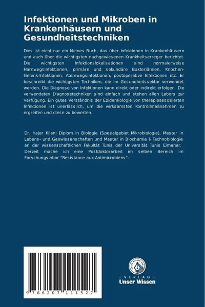 Dies ist nicht nur ein kleines Buch, das über Infektionen in Krankenhäusern und auch über die wichtigsten nachgewiesenen Krankheitserreger berichtet. Die wichtigsten Infektionslokalisationen sind normalerweise Harnwegsinfektionen, primäre und sekundäre Bakteriämien, Knochen-Gelenk-Infektionen, Atemwegsinfektionen, postoperative Infektionen etc. Er beschreibt die wichtigsten Techniken, die im Gesundheitssektor verwendet werden. Die Diagnose von Infektionen kann direkt oder indirekt erfolgen. Die verwendeten Diagnosetechniken sind einfach und stehen allen Labors zur Verfügung. Ein gutes Verständnis der Epidemiologie von therapieassoziierten Infektionen ist unerlässlich, um die wirksamsten Kontrollmaßnahmen zu ergreifen und diese zu bewerten.