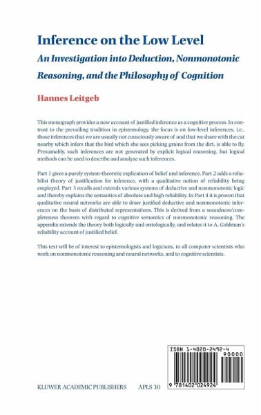 In contrast to the prevailing tradition in epistemology, the focus in this book is on low-level inferences, i.e., those inferences that we are usually not consciously aware of and that we share with the cat nearby which infers that the bird which she sees picking grains from the dirt, is able to fly. Presumably, such inferences are not generated by explicit logical reasoning, but logical methods can be used to describe and analyze such inferences.