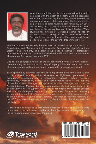 The idea to write the book, Inferiority Complex did not just come out of the blues. Since I came across the statement that "a child is born without character or personality" there is not a time that the statement has a greater influence on me than when I started out to write this book. This is because, I could not have found a better opportunity to understudy a divergent group of people than I found in my capacity as the then Supervisory Councillor for Health and Medical Services of Ilesa East Local Government Council, in Osun State of Nigeria. Be that as it may, I should just briefly state here that this five-chapter book has taken cognizance of psychological, physiological, sociological, physical, genetic, mystical, religious, societal, and environmental factors on the emergence or otherwise of inferiority complex in individuals, and the inevitable effects it brings to bear on the development and well-being of society and its prevention or remedial precautions as applicable.