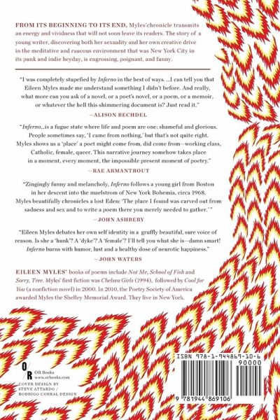 Poet, essayist and performer Eileen Myles' chronicle transmits an energy and vividness that will not soon leave its readers. Her story of a young female writer, discovering both her sexuality and her own creative drive in the meditative and raucous environment that was New York City in its punk and indie heyday, is engrossing, poignant, and funny.