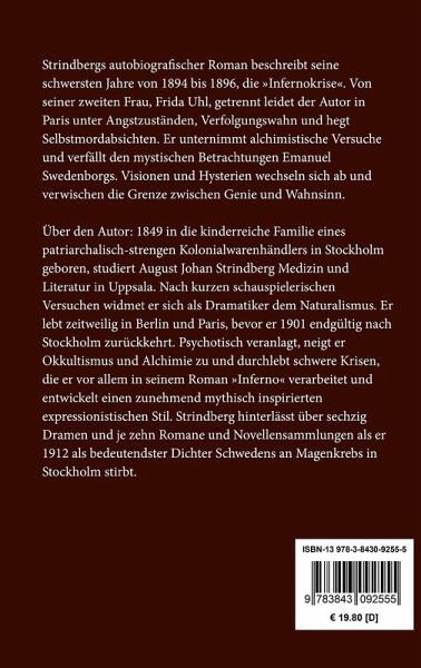Strindbergs autobiografischer Roman beschreibt seine schwersten Jahre von 1894 bis 1896, die "Infernokrise". Von seiner zweiten Frau, Frida Uhl, getrennt leidet der Autor in Paris unter Angstzuständen, Verfolgungswahn und hegt Selbstmordabsichten. Er unternimmt alchimistische Versuche und verfällt den mystischen Betrachtungen Emanuel Swedenborgs. Visionen und Hysterien wechseln sich ab und verwischen die Grenze zwischen Genie und Wahnsinn.
