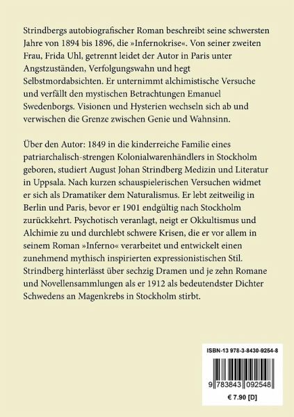 Strindbergs autobiografischer Roman beschreibt seine schwersten Jahre von 1894 bis 1896, die "Infernokrise". Von seiner zweiten Frau, Frida Uhl, getrennt leidet der Autor in Paris unter Angstzuständen, Verfolgungswahn und hegt Selbstmordabsichten. Er unternimmt alchimistische Versuche und verfällt den mystischen Betrachtungen Emanuel Swedenborgs. Visionen und Hysterien wechseln sich ab und verwischen die Grenze zwischen Genie und Wahnsinn.