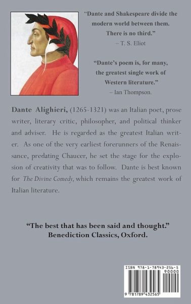 "Dante and Shakespeare divide the modern world between them. There is no third." - T. S. Eliot "Dante's poem is, for many, the greatest single work of Western literature." - Ian Thompson. "I love my Dante as much as the Bible. He is my spiritual food, the rest is ballast." - James Joyce. In the middle of our life's journey, I found myself in a dark wood/Bewildered, and I knew I had lost the way: so opens Dante's Divine Comedy, "the best book literature has achieved" as Jorge Luis Borges writes. Dante's Inferno, one of the greatest works of European literature, and "the most original and audacious treatment of the afterlife in Western literature" dazzles with its vivid and inventive storytelling and imagery. However, it contains much more than poetry and theology; it displays Dante's wide and comprehensive learning, and his deep understanding of contemporary politics and society. "All life is contained in the poem, for Dante's was an all-encompassing imagination, that interwove classical philosophy with Catholic doctrine and contemporary politics," (Ian Thompson). The thirty-three cantos of Inferno follow Dante, as, guided by the epic poet, Virgil, he travels through the nine descending circles of a freezing Hell, until he meets Satan trapped at the bottom. The Inferno is the most gripping and engaging book of The Divine Comedy, as Dante meets those damned for forbidden love, and all manner of human vices. (The damned, amusingly, include many of Dante's enemies!) Inferno is the logical conclusion of all that is worst in human life. It is bearable only because Dante eventually emerges. The Divine Comedy was written over a period of twenty years towards the end of Dante's life. It was appreciated as a masterpiece soon after its completion, and it has captivated both readers and the Western imagination ever since. The Inferno is the most widely translated book after the Bible. This edition is translated by the celebrated poet, Henry Wadsworth Longfellow. Dante Alighieri, (1265-1321) was an Italian poet, prose writer, literary critic, philosopher, and political thinker and adviser. He is regarded as the greatest Italian writer. As one of the earliest forerunners of the Renaissance, predating Chaucer, he set the stage for the explosion of creativity that was to follow. Dante is best known for The Divine Comedy, which remains the greatest work of Italian literature.