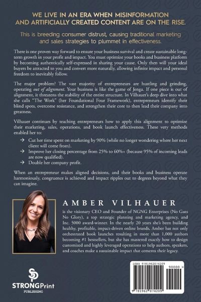 We live in an era when misinformation and artificially created content are on the rise. This is breeding consumer distrust, causing traditional marketing and sales strategies to plummet in effectiveness. There is one proven way forward to ensure your business survival and create sustainable long-term growth in your profit and impact. You must optimize your books and business platform by becoming authentically self-expressed in sharing your cause. Only then will your ideal buyers be attracted to you and convert more naturally, allowing infinite impact and personal freedom to inevitably follow. The major problem? The vast majority of entrepreneurs are hustling and grinding, operating out of alignment. Your business is like the game of Jenga. If one piece is out of alignment, it threatens the stability of the entire structure. In Vilhauer's deep dive into what she calls "The Work" (her Foundational Four Framework), entrepreneurs identify their blind spots, overcome resistance, and strengthen their core to then lead their company into greatness. Vilhauer continues by teaching entrepreneurs how to apply this alignment to optimize their marketing, sales, operations, and book launch effectiveness. These very methods enabled her to: Cut her time spent on marketing by 90% (while no longer wondering where her next client will come from). Improve her closing percentage from 25% to 60%+ (because 95% of incoming leads are now qualified). Double her company profit. When an entrepreneur makes aligned decisions, and their books and business operate harmoniously, congruence is achieved and impact ripples out to degrees beyond what they can imagine.