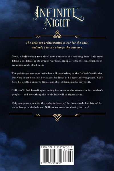 In the riveting conclusion to the Da'Valia Trilogy, Neva, a half-human thief now notorious for escaping from Lithlorian Island, grapples with the consequences of an unbreakable blood oath and her own failure. With war looming, she must return empty-handed to her mother's people: the Da'Valia, who are as cruel as they are beautiful. Everything she loves and holds dear will be ripped away as the gods orchestrate a war for the ages. Only one person can tip the scales in favor of her homeland, and the fate of her realm hangs in the balance. Will she embrace her destiny in time? What to expect:Found family Chosen one trope Happy ever after