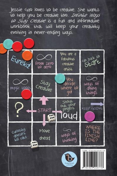 Jessie Gao loves to be creative. She wants to help you be creative too. Infinite Ways to Stay Creative is a fun and informative workbook that will keep your creativity evolving in never-ending ways.