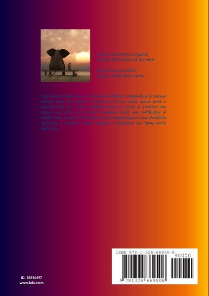 Ogni istante della vita è volto verso l'infinito a completare lo stesso istante dopo più evoluto di prima su di una scala senza primi e secondi, alla pari, volta all'infinito come un cuore di emozioni che rimane nel tutto ad arricchire l'universo nella sua moltitudine di infiniti forse paralleli, dimensioni che si sovrappongono l'una all'infinito dell'altra a regalarci quelle armonie e sfumature che fanno parte della vita.