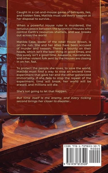 Caught in a cat-and-mouse game of betrayals, lies, and hidden foes, Matilda must use every weapon at her disposal to survive... When a powerful House ruler is murdered, the tenuous peace between the tyrannical Houses who control Earth's resources shatters, and war breaks out across the world. Matilda Case, leader of the rebel House Brown, is on the run. She and her allies have been accused of murder and treason. There's a bounty on their heads, which isn't the best thing in good times, and this surely isn't a good time. Assassins, mercenaries, and other violent folk sent by the Houses are closing in on her, fast. To protect the people she loves, to save the world, Matilda must find a way to stop an ancient time experiment that gave her and the other galvanized immortality. If she fails to stop the repeat of the experiment, time will break, her world will be erased, and millions will die. She's not going to let that happen. But time itself is the enemy, and every ticking second brings her closer to disaster...