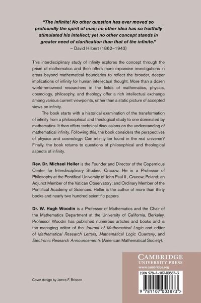This interdisciplinary study of infinity explores the concept through the prism of mathematics and then offers more expansive investigations in areas beyond mathematical boundaries to reflect the broader, deeper implications of infinity for human intellectual thought. More than a dozen world-renowned researchers in the fields of mathematics, physics, cosmology, philosophy and theology offer a rich intellectual exchange among various current viewpoints, rather than displaying a static picture of accepted views on infinity. The book starts with a historical examination of the transformation of infinity from a philosophical and theological study to one dominated by mathematics. It then offers technical discussions on the understanding of mathematical infinity. Following this, the book considers the perspectives of physics and cosmology: can infinity be found in the real universe? Finally, the book returns to questions of philosophical and theological aspects of infinity.