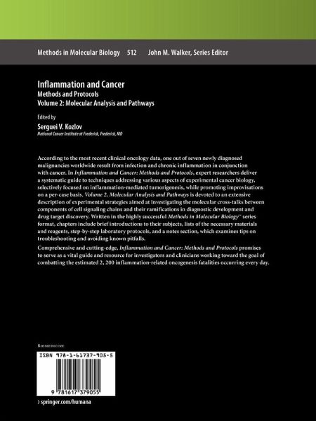 According to the most recent clinical oncology data, one out of seven newly diagnosed malignancies worldwide result from infection and chronic inflammation in conjunction with cancer. In Inflammation and Cancer: Methods and Protocols, expert researchers deliver a systematic guide to techniques addressing various aspects of experimental cancer biology, selectively focused on inflammation-mediated tumorigenesis, while promoting improvisations on a per-case basis. Volume 2, Molecular Analysis and Pathways is devoted to an extensive description of experimental strategies aimed at investigating the molecular cross-talks between components of cell signaling chains and their ramifications in diagnostic development and drug target discovery. Written in the highly successful Methods in Molecular Biology(TM) series format, chapters include brief introductions to their subjects, lists of the necessary materials and reagents, step-by-step laboratory protocols, and a notes section, which examines tips on troubleshooting and avoiding known pitfalls.