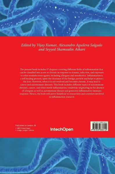The present book includes 17 chapters covering different fields of inflammation that can be classified into acute or chronic in response to trauma, infection, and exposure to other noninfectious agents, including allergens and xenobiotics. Inflammation is a self-healing process, upon the clearance of the foreign particle and helps to protect the host. However, when it is not resolved and becomes chronic, it may lead to cancer and autoimmune diseases. This book includes different topics of autoimmune diseases, cancer, and other sterile inflammatory conditions originating in the absence of allergens as well as autoimmune disease and generates inflammatory immune response. Hence, the book will prove beneficial to researchers and scientists involved in inflammation research.