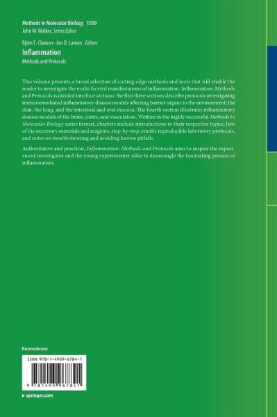 This volume presents a broad selection of cutting-edge methods and tools that will enable the reader to investigate the multi-faceted manifestations of inflammation. Inflammation: Methods and Protocols is divided into four sections: the first three sections describe protocols investigating immune-mediated inflammatory disease models affecting barrier organs to the environment; the skin, the lung, and the intestinal and oral mucosa. The fourth section illustrates inflammatory disease models of the brain, joints, and vasculature. Written in the highly successful Methods in Molecular Biology…mehr