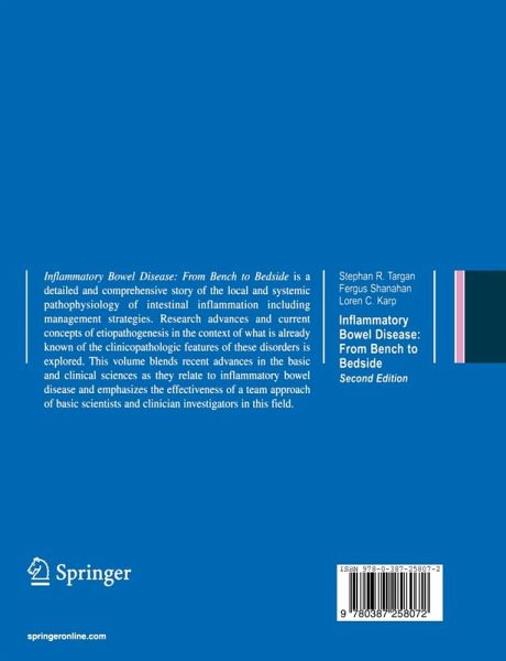 The Laboratory Bench.- Introduction: Inflammatory bowel disease: from bench to bedside.- The changing faces of Crohn's disease and ulcerative colitis.- Genetics of inflammatory bowel disease.- Experimental mouse models of inflammatory bowel disease: new insights into pathogenic mechanisms.- The normal intestinal mucosa: a state of 'controlled inflammation'.- The lymphocyte-epithelial-bacterial interface.- The mucosal inflammatory response. Cytokines and chemokines.- Role of the microcirculation in chronic gut inflammation.- Remission, relapse, intestinal healing and repair.- Antibodies in the exploration of inflammatory bowel disease pathogenesis and disease stratification.- Pathophysiology of inflammatory bowel disease: the effect of inflammation on intestinal function.- Systemic consequences of intestinal inflammation.- The Bedside.- Understanding symptoms and signs in inflammatory bowel disease.- Clinical course and complications of ulcerative colitis and ulcerative proctitis.- Clinical features and complications of Crohn's disease.- Mechanisms of systemic inflammation associated with intestinal injury.- Pathology of inflammatory bowel disease: a critical appraisal in diagnosis and management.- An endoscopic and histologic perspective of diagnosis: when, where, and what to do.- Radiologic (radiographic) and imaging features of ulcerative colitis and Crohn's disease.- New diagnostic approaches in inflammatory bowel disease.- Differential diagnosis of colitis.- 'Disease management' in chronic medical conditions.- Pharmacoeconomics and inflammatory bowel disease.- Measuring quality of life in inflammatory bowel disease.- Clinical pharmacology in inflammatory bowel disease: optimizing current medical therapy.- Multi-site therapeutic modalities forinflammatory bowel diseases - mechanisms of action.- Targeted therapies for inflammatory bowel disease.- Role of antibiotics and probiotics in the management of inflammatory bowel disease.- Nutrition in inflammatory bowel disease.- Medical management of ulcerative colitis.- Surgical management of ulcerative colitis.- Pouchitis: clinical characteristics and management.- Medical therapy for Crohn's disease.- Surgery for Crohn's disease.- Postoperative prevention of recurrence of Crohn's disease.- The molecular pathology of inflammatory bowel disease-associated neoplasia and preneoplasia.- Dysplasia in inflammatory bowel disease: clinical pathology and current surveillance methods.- Hepatobiliary disorders.- Articular and ocular complications of inflammatory bowel disease.- Cutaneous manifestations of inflammatory bowel disease.- Fertility and pregnancy in inflammatory bowel disease.- Special considerations in the diagnosis and management of inflammatory bowel disease in the pediatric age group.- Microscopic colitis: collagenous and lymphocytic colitis.- Colon ischemia.- Diversion colitis.- Pseudomembranous colitis and Clostridium difficile infection.- Infectious colitis.- Human Immunodeficiency virus and inflammatory bowel disease.- Bone metabolism and inflammatory bowel disease.- Back to the Laboratory Bench.- Epilogue: Bench to bedside and back to bench.