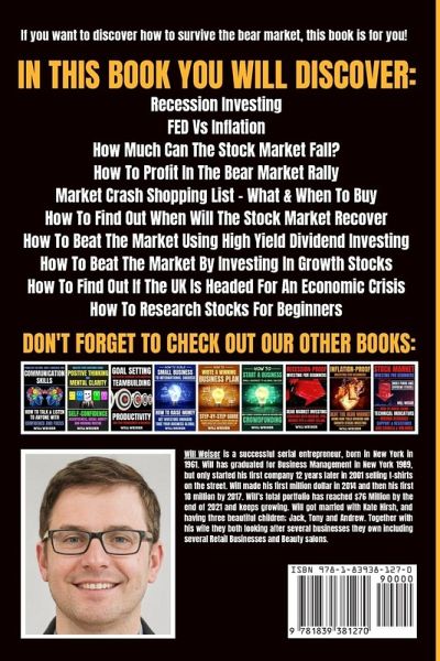 If you want to discover how to survive the bear market, this book is for you! Everyone can become wealthy on a bull market but if you want to discover how to thrive on the bear market and want to discover how to profit from THE GREAT RESET, you will find this book extremely useful! BUY THIS BOOK NOW AND GET STARTED TODAY! First you will discover what are the best inflation proof assets to protect your wealth. Next you will discover how to use several bear market strategies such as dollar cost averaging, dividend investing, short selling, wheel options strategy and inverse ETF investing. After that, you will learn what are the best recession-proof stocks that you should invest before the bear market. Next, you will discover how to predict recession using inverted yield curve and how to research stocks using fundamental analysis. Lastly, you will learn how and where to invest successfully in IPOs or Initial Public Offerings. If you are ready to change your life and multiply your wealth, let's first cover how to profit from THE GREAT RESET! In this book you will discover:Recession Investing FED Vs Inflation How Much Can The Stock Market Fall? How To Profit In The Bear Market Rally Market Crash Shopping List - What & When To Buy How To Find Out When Will The Stock Market Recover How To Beat The Market Using High Yield Dividend Investing How To Beat The Market By Investing In Growth Stocks How To Find Out If The UK Is Headed For An Economic Crisis How To Research Stocks For Beginners BUY THIS BOOK NOW AND GET STARTED TODAY!