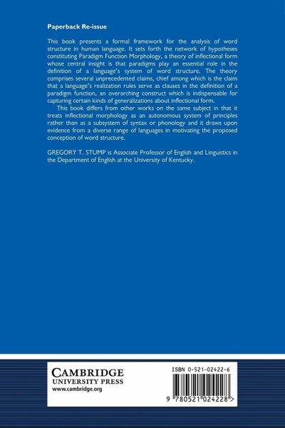 A new contribution to linguistic theory, this book presents a formal framework for the analysis of word structure in human language. It sets forth the network of hypotheses constituting Paradigm Function Morphology, a theory of inflectional form whose central insight is that paradigms play an essential role in the definition of a language's system of word structure. The theory comprises several unprecedented claims, chief among which is the claim that a language's realization rules serve as clauses in the definition of a paradigm function, an overarching construct which is indispensable for capturing certain kinds of generalizations about inflectional form. This book differs from other recent works on the same subject in that it treats inflectional morphology as an autonomous system of principles rather than as a subsystem of syntax or phonology and it draws upon evidence from a diverse range of languages in motivating the proposed conception of word structure.