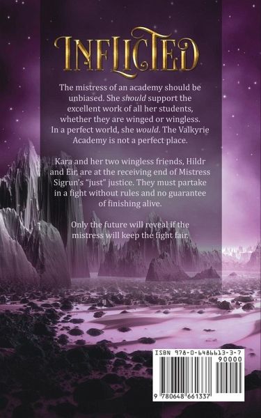 The mistress of an academy should be unbiased. She should support the excellent work of all her students, whether they are winged or wingless. In a perfect world, she would. The Valkyrie Academy is not a perfect place. Kara and her two wingless friends, Hildr and Eir, are at the receiving end of Mistress Sigrun's "just" justice. They must partake in a fight without rules and no guarantee of finishing alive. Only the future will reveal if the mistress will keep the fight fair.