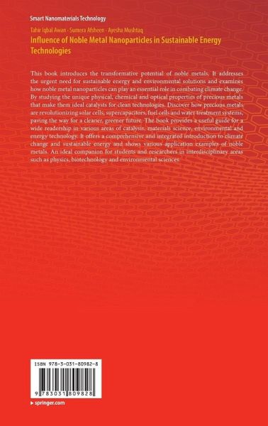 Chapter 1: Introduction to Sustainable Energy and Climate Change.- Chapter 2: Carbon Free Energy- Free Energy SupplyChapter 3: Overview of Noble Metals.- Chapter 4: Noble Metal Based Nanosensors for Environmental Detection.- Chapter 5: Nanomaterials for hazardous waste management.- Chapter 6: Role of Noble Metals in the Efficiency of Solar Cells.- Chapter 7: Contribution of Noble Metals in Agriculture.- Chapter 8: Application of Noble Metal Nanoparticles towards Supercapacitors.- Chapter 9: Role of Noble Metals in Fuel Cells and Batteries.- Chapter 10: Noble Metal Nanoparticles for Pollutant Decomposition.- Chapter 11: Noble Metal Based Nanoparticles for CO2 Reduction and Hydrogen Production.