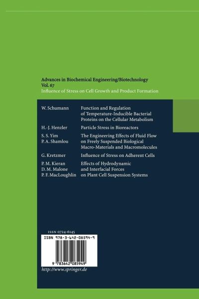 Stresses which arise in bioreactors can influence process performance considerably. Recent molecular biological investigations indicate that stress caused by fluid dynamical effects and extreme values of process variables and toxic substances cause similar responses in the cells. These molecular fundamentals, as well as quantitative evaluation of fluid dynamical stresses and, their effects on microorganisms, animal and plant cells and proteins are treated in this volume.