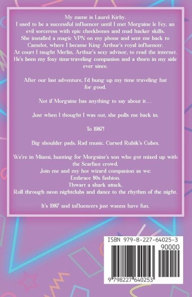 My name is Laurel Kirby. I used to be a successful influencer until I met Morgaine le Fey, an evil sorceress with epic cheekbones and mad hacker skills. She installed a magic VPN on my phone and sent me back to Camelot, where I became King Arthur's royal influencer. At court I taught Merlin, Arthur's sexy advisor, to read the internet. He's been my foxy time-traveling companion and a thorn in my side ever since. After our last adventure, I'd hung up my time traveling hat for good. Not if Morgaine has anything to say about it... Just when I thought I was out, she pulls me back in. To 1987! Big shoulder pads. Rad music. Cursed Rubik's Cubes. We're in Miami, hunting for Morgaine's son who got mixed up with the Scarface crowd. Join me and my hot wizard companion as we: Embrace 80s fashion. Thwart a shark attack. Roll through neon nightclubs and dance to the rhythm of the night. It's 1987 and influencers just wanna have fun.