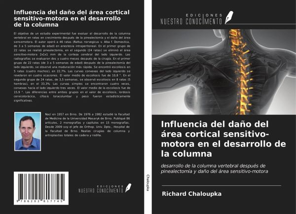El objetivo de un estudio experimental fue evaluar el desarrollo de la columna vertebral en ratas en crecimiento después de la pinealectomía y el daño del área sensomotora. El autor operó a 46 ratas (Rattus norvegicus v. Alba f. Domestica, de 3 a 5 semanas de edad) en anestesia intraperitoneal. En el primer grupo de 22 ratas se realizó pinealectomía, en el segundo (24 ratas) se eliminó el área sensitivo-motora 2x1x1 mm de la corteza cerebral del lado izquierdo. Las radiografías se evaluaron dos y cuatro meses después de la cirugía. En el primer grupo de 22 ratas (de 3 a 5 semanas de edad) después de la pinealectomía del lado izquierdo, se observó una maduración más rápida. Se encontró escoliosis en 5 ratas (cuatro machos), en 22,7%. Las curvas convexas del lado izquierdo se revelaron en cuatro ocasiones. El valor medio de escoliosis fue de 10,8 °. En el segundo grupo de 24 ratas, de 3,5 semanas, se observó escoliosis en 8 ratas (5 hembras), en el 33,3%. Las curvas simples se encontraron cuatro veces, convexas hacia el lado izquierdo tres veces. El valor medio de la escoliosis fue de 15,9 °. Las diferencias entre ambos grupos en el valor de escoliosis, lordosis cervicotorácica, cifosis toracolumbar y peso fueron estadísticamente significativas.