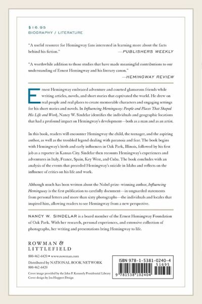 Ernest Hemingway embraced adventure and courted glamorous friends while writing articles, novels, and short stories that captivated the world. Hemingway’s personal relationships and experiences influenced the content of his fiction, while the progression of places where the author chose to live and work shaped his style and rituals of writing. Whether revisiting the Italian front in A Farewell to Arms, recounting a Pamplona bull run in The Sun Also Rises,or depicting a Cuban fishing village in The Old Man and the Sea, setting played an important part in Hemingway’s fiction. The author also drew on real people—parents, friends, and fellow writers, among others—to create memorable characters in his short stories and novels. In Influencing Hemingway: The People and Places That Shaped His Life and Work Nancy W. Sindelar introduces the reader to the individuals who played significant roles in Hemingway’s development as both a man and as an artist—as well as the environments that had a profound impact on the author’s life. In words and photos, readers will see images of Hemingway the child, the teenager, and the aspiring author—as well as the troubled legend dealing with paranoia and fear. The book begins with Hemingway’s birth and early influences in Oak Park, Illinois, followed by his first job as a reporter in Kansas City. Sindelar then recounts Hemingway’s experiences and adventures in Italy, France, Spain, Key West, Florida, and Cuba, all of which found their way into his writing. The book concludes with an analysis of the events that preceded the author’s suicide in Idaho and reflects on the influences critics had on his life and work. Though much has been written about the life and work of the Nobel prize-winning author, Influencing Hemingway is the first publication to carefully document—in photographs and letters—the individuals and locales that inspired him. Featuring more than 60 photos, many of which will be new to the general and academic reader, and unguarded statements from personal letters to and from his parents, lovers, wives, children, and friends, this unique biography allows readers to see Hemingway from a new perspective.