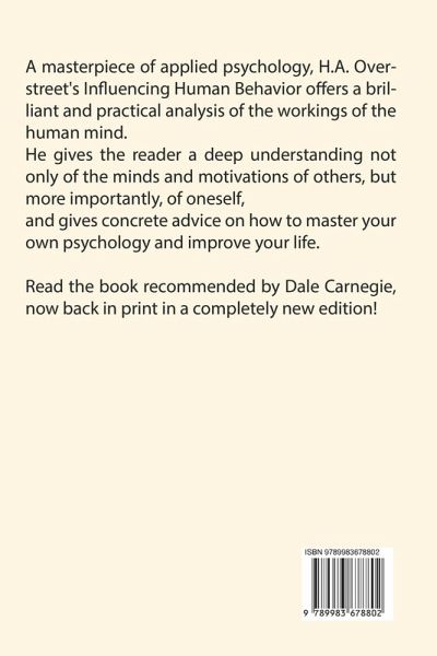 A masterpiece of applied psychology, H.A. Overstreet's Influencing Human Behavior offers a brilliant and practical analysis of the workings of the human mind. He gives the reader a deep understanding not only of the minds and motivations of others, but more importantly, of oneself, and gives concrete advice on how to master your own psychology and improve your life. Read the book recommended by Dale Carnegie