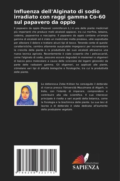 Il papavero da oppio (Papaver somniferum L.) è una delle piante medicinali più importanti che produce molti alcaloidi oppiacei, tra cui morfina, tebaina, codeina, papaverina e noscapina. Il papavero da oppio contiene un'ampia gamma di alcaloidi ed è stato un medicinale molto prezioso, utile soprattutto per alleviare il dolore e trattare alcuni tipi di tosse. Tenendo conto di queste caratteristiche, sembra altamente auspicabile impegnarsi per incrementare la crescita della pianta e la produttività dei suoi alcaloidi attraverso una nuova tecnica agricola. Recentemente è stato scoperto che i polisaccaridi, come l'alginato di sodio, possono essere degradati in monomeri e oligomeri di basso peso molecolare a causa della scissione dei legami glicosidici da parte delle radiazioni gamma. Gli oligomeri, se applicati alle piante, stimolano vari tipi di attività biologiche e fisiologiche, tra cui la produttività delle piante.